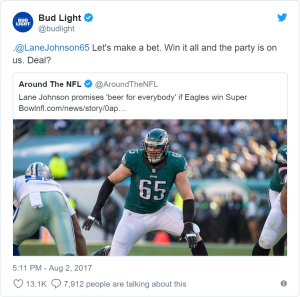 Prior to the 2017-2018 NFL season, Lane took to Twitter and let an entire fanbase of Eagles fans (who REALLY enjoy beer) know that if the Eagles won Super Bowl 52, that he would purchase every single person in Philly a beer. Someone at Bud Light caught this story and told Lane that they would cover the tab if the Birds took home the SB52 trophy. Other than that, Johnson just seems like a dude who likes to party and knows how to throw down on some OKLA BBQ.